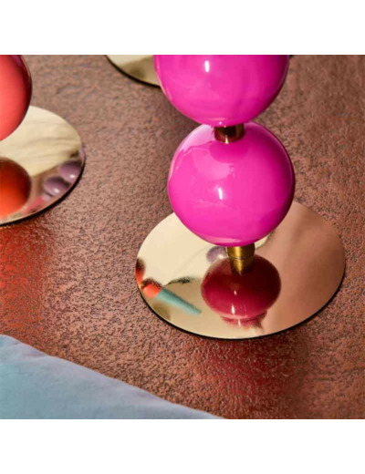 Pour une décoration romantique et moderne, disposez ce bougeoir rose sur une table de chevet ou une commode. Son association de teintes vibrantes et métalliques apporte une atmosphère cocooning et sophistiquée, idéale pour une chambre à l’esprit glamour et raffiné.