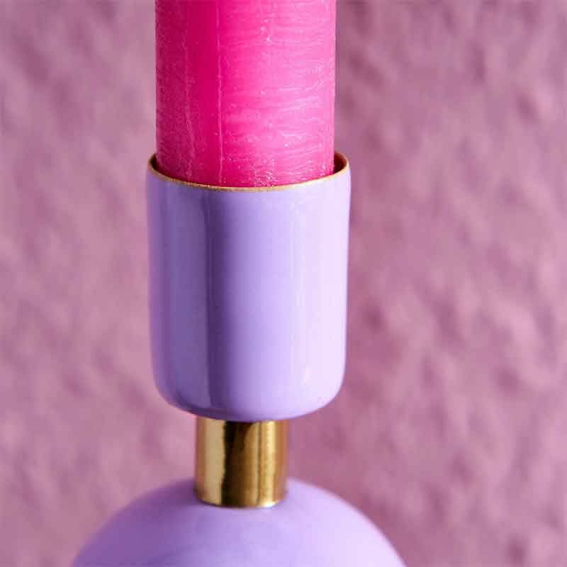 Pour une mise en scène sophistiquée lors d’un dîner ou d’un événement spécial, placez ce bougeoir Pia violet en centre de table, seul ou accompagné d’autres bougeoirs aux teintes complémentaires. Associez-le à des bougies blanches, violettes ou dorées pour une ambiance chaleureuse et élégante.