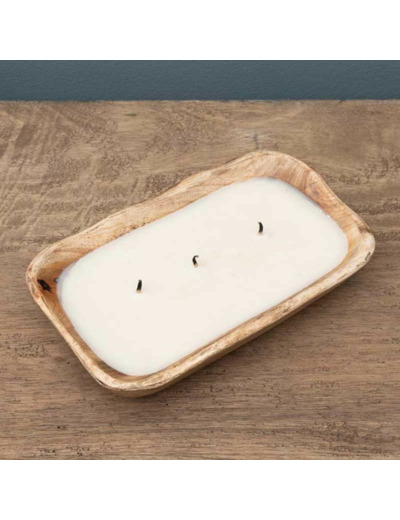 La bougie en cire parfumée au soja est présentée dans un support rectangulaire en bois manguier pour un look de style campagnard. Créez une atmosphère chaleureuse et confortable avec cette belle bougie 3 mèches. Elle trouvera rapidement sa place dans votre intérieur. Choisissez dès aujourd'hui cette belle bougie originale et chaleureuse et illuminez votre vie avec une lumière tamisée.