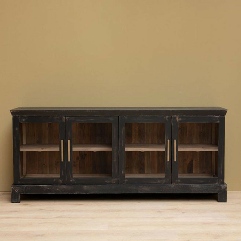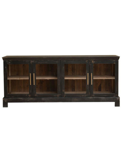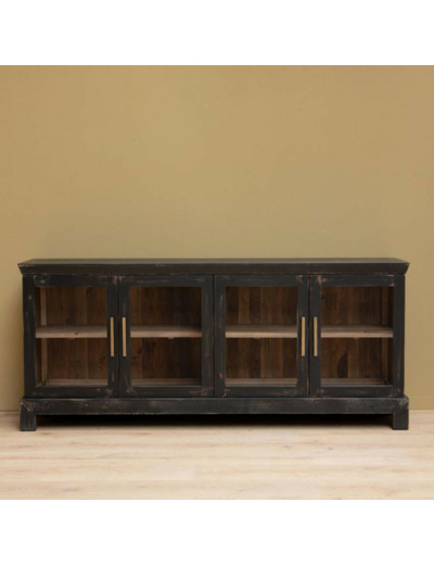 Équipé de quatre portes vitrées aux cadres robustes, ce meuble se transforme en une véritable vitrine d'exposition tout en protégeant vos effets personnels de la poussière. Les poignées minimalistes en métal doré ajoutent une touche de modernité discrète, facilitant l'ouverture sur de larges étagères spacieuses.