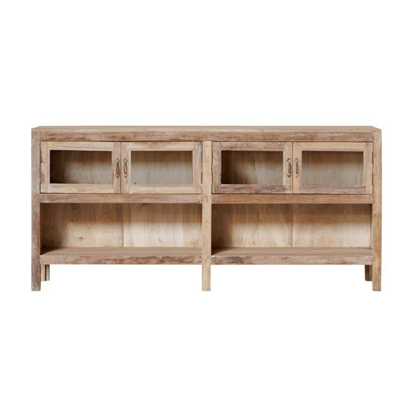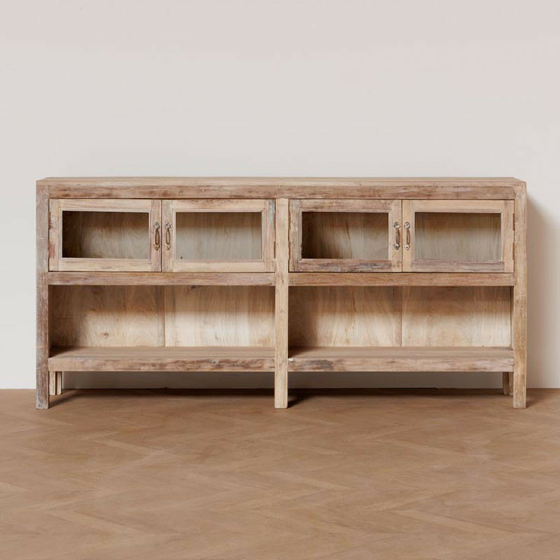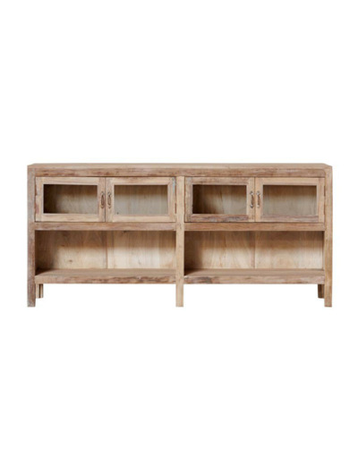 Ce buffet long est la pièce maîtresse idéale pour la salle à manger, servant à la fois de vaisselier et de support pour des plats.
