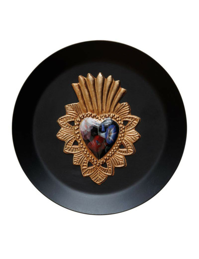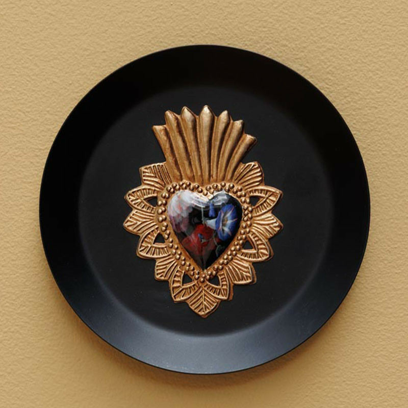 Accrochez-le seul sur un mur clair pour maximiser le contraste avec le fond noir et l'or.
