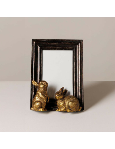 Le cadre photo noir en résine, orné de deux adorables lapins dorés, est bien plus qu'un simple accessoire : c'est une véritable pièce de décoration qui allie charme et sophistication.
