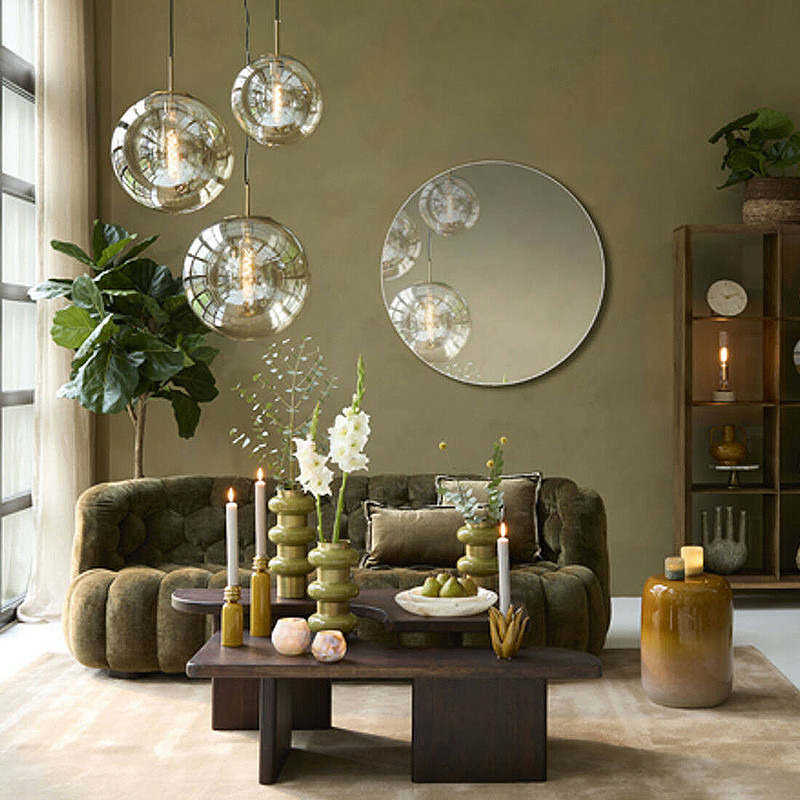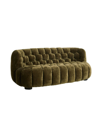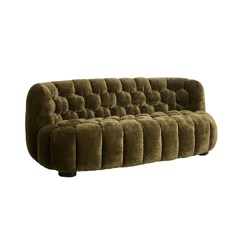 Placé contre un mur blanc, gris clair, ou même un mur de briques ou de béton, le tissu vert olive et la texture matelassée ressortiront de manière spectaculaire.