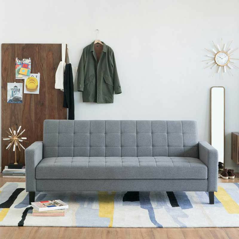 Découvrez le raffinement de ce beau canapé convertible en tissu gris. Avec son design contemporain, son tissu gris chic et ses pieds noirs robustes, ce canapé offre un équilibre parfait entre esthétique et fonctionnalité, créant une atmosphère accueillante dans votre intérieur !