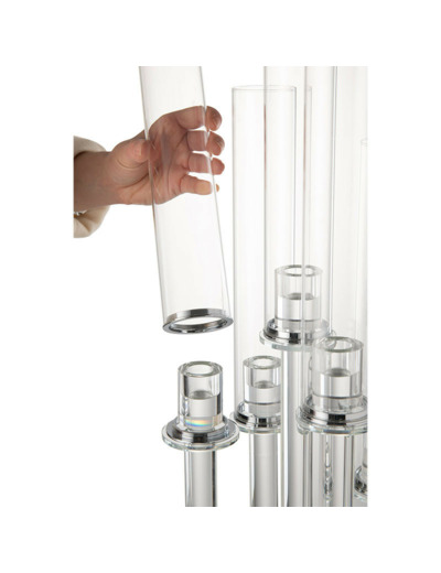 Matériaux Premium : La combinaison du verre épais et des supports métalliques polis garantit une finition haut de gamme, idéale pour les décorations de style Contemporain Chic, Minimaliste ou Événementiel.