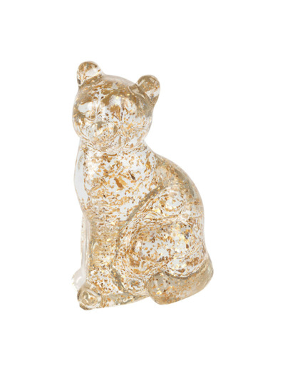 Installé sur un rebord de fenêtre lumineux, la décoration chat en verre doré capte chaque rayon de lumière et révèle ses reflets scintillants, apportant une touche de magie et d’élégance.