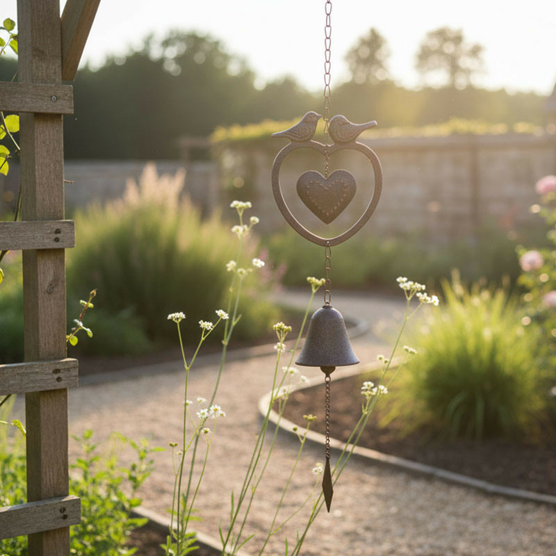L'Équilibre parfait : La structure se termine par un poids en forme de losange qui assure la stabilité verticale de l'ensemble tout en optimisant le mouvement de la cloche pour un son harmonieux.