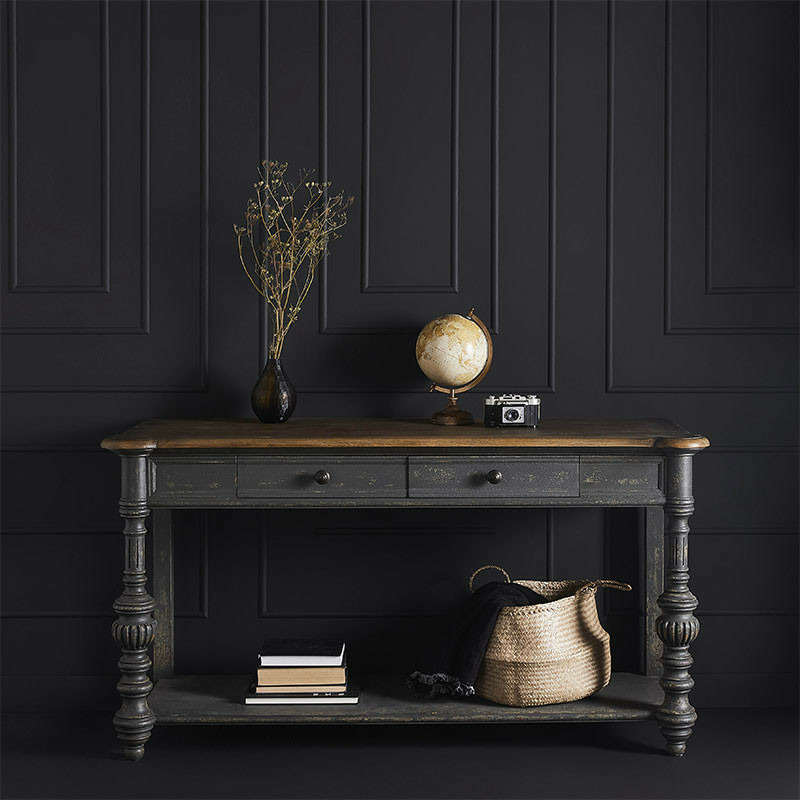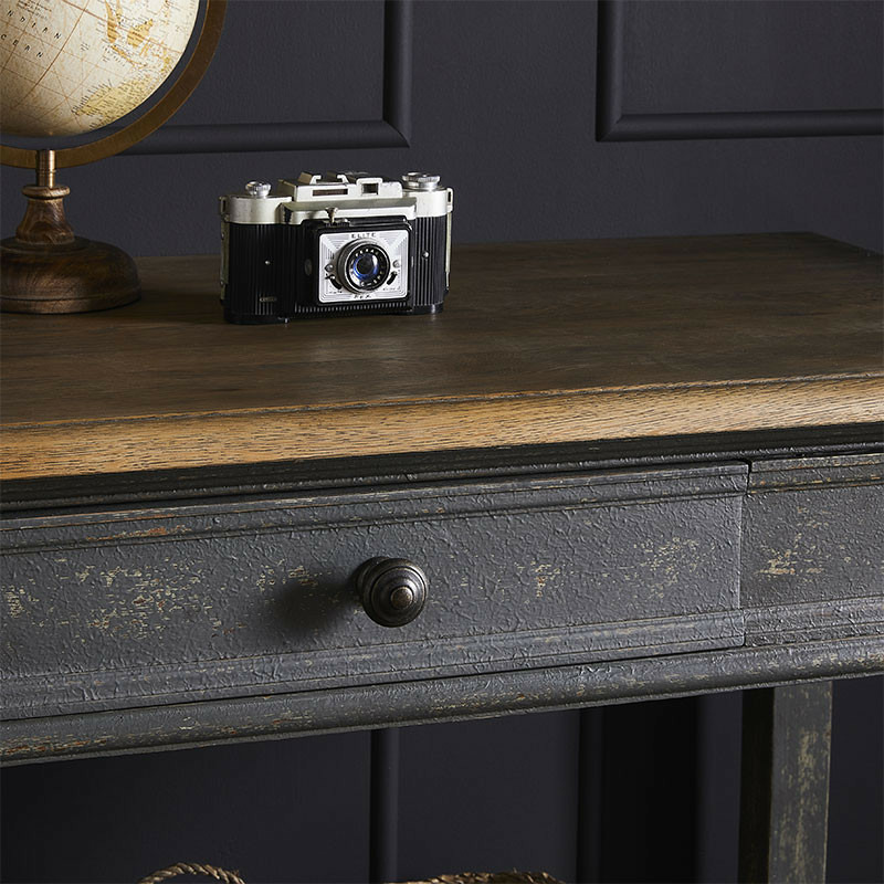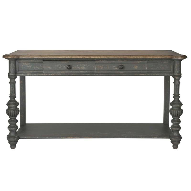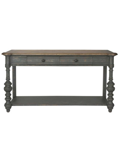 Les deux tiroirs vous permettent de ranger tout ce dont vous avez besoin, vous pourrez y mettre vos clés, vos lunettes, vos gants, vos magazines.. Cette console pourra accueillir une belle lampe, un vase ou encore des cadres sur son plateau. Craquez pour la console avec sa belle allure, sa finition patinée et sa qualité.