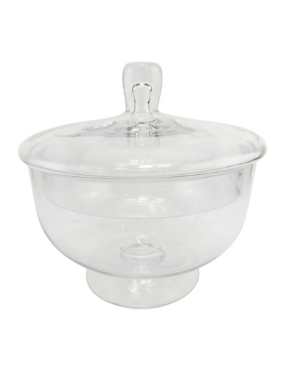 Dans une cuisine ou une salle à manger, cette coupe en verre avec couvercle se transforme en élément pratique et esthétique.