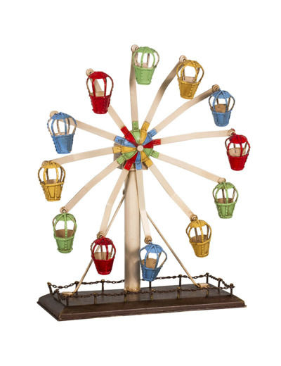 Décoration grande roue en fer colorée, idéal pour apporter une touche de décoration vintage rétro et colorée à votre intérieur! Cette grande roue plaira aux grands comme aux petits et sucsitera des regards !