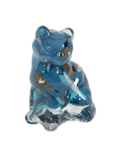 Cette magnifique décoration en verre trouve naturellement sa place sur une console élégante, où les reflets dorés scintillants et les nuances bleues profondes apportent une touche sophistiquée et lumineuse à l’espace.