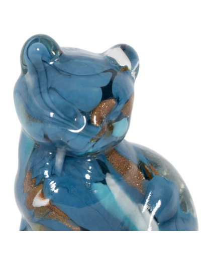 Sur une table basse moderne, la décoration chat bleu doré verre devient un point d’attraction captivant, sublimant l’intérieur avec originalité et caractère.