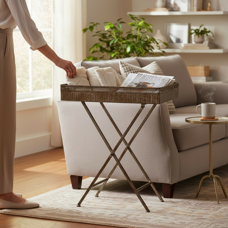 Notre desserte pliante en fer patiné haut de gamme est bien plus qu'un simple support pour plantes ou de maison. Elle incarne l'alliance parfaite entre l'esthétique raffinée classique et l'intemporalité.