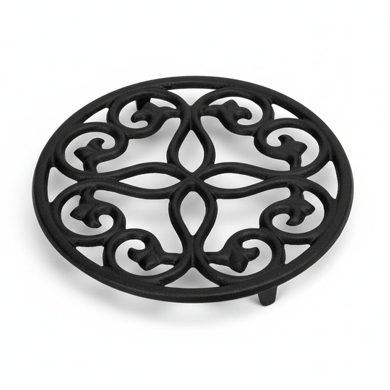 Grâce à sa surface en fonte et ses pieds surélevés, il assure une circulation de l'air optimale et protège vos meubles des marques de chaleur. Idéal sur une table à manger, dans une cuisine ou même comme pièce décorative sur un buffet.