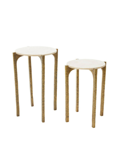 Ce duo de tables est idéal pour sublimer un coin lecture ou pour servir de supports élégants à des objets d'art dans une entrée. Leur design précieux s'intègre parfaitement dans une décoration de style Classique Chic ou Art Déco. Pour un rendu harmonieux, placez-les sur un sol sombre ou un tapis contrasté afin de faire ressortir la clarté du marbre. Vous pouvez les utiliser ensemble pour un effet de superposition ou les disposer séparément de part et d'autre d'une assise pour équilibrer votre espace de vie.