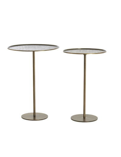 Ce duo est l'allié idéal pour accompagner l'assise pivotante Kemena, créant un rappel harmonieux entre les structures en métal bronze. Ces tables s'intègrent parfaitement dans un salon de style Moderne Organique ou Urban Chic, posées sur un tapis aux tons neutres pour faire ressortir leur teinte brun foncé. Pour une mise en scène sophistiquée, disposez-y un vide-poches en laiton, une bougie parfumée ou l'une des lampes sculptures de la collection pour jouer sur les différents niveaux de lumière.