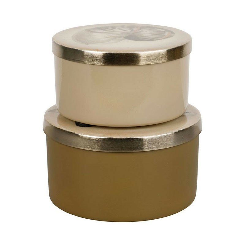 Finitions Précieuses : Les bordures des couvercles au fini laiton brossé soulignent l'éclat des boîtes et apportent une touche "bijou" irrésistible.