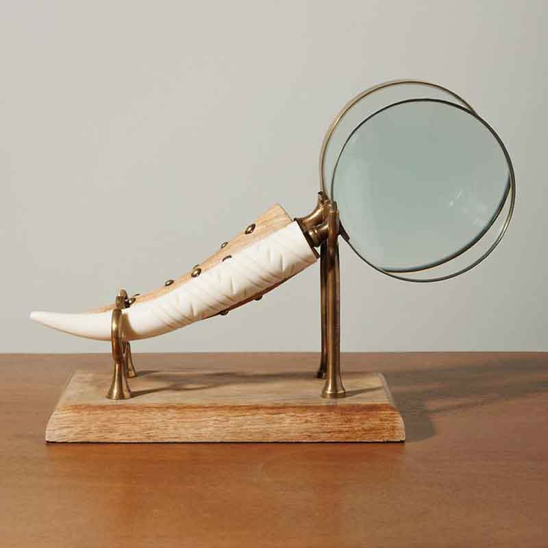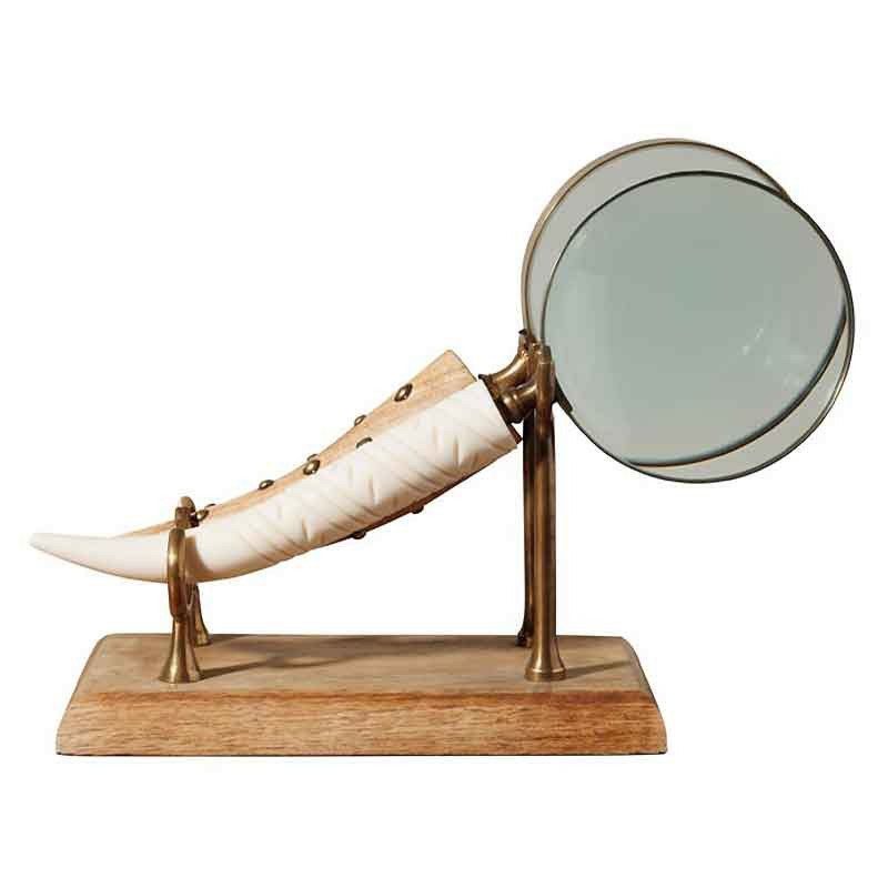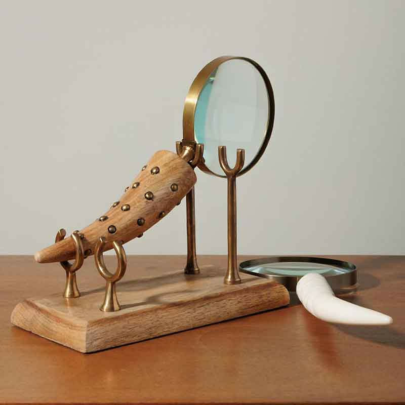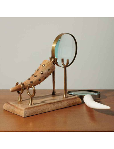 Alliant charme d’un cabinet de curiosités et raffinement artisanal, cet ensemble de loupe de bureau est un accessoire à la fois pratique et décoratif.
