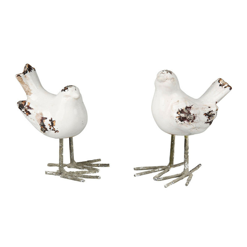 Finition patinée unique : Chaque oiseau arbore une robe blanche à l'aspect vieilli, parsemée d'éclats sombres et de traces de rouille simulées, évoquant le passage des saisons et le charme des objets de famille transmis avec soin.