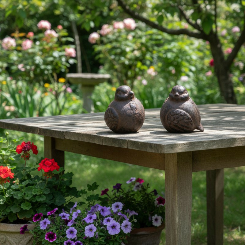 Mariez-les à d'autres objets en fonte ou en fer patiné, comme votre gloriette ou votre banc, pour créer une unité visuelle pleine de charme. Vous pouvez également les utiliser comme presse-papiers élégants sur un bureau de style ancien.