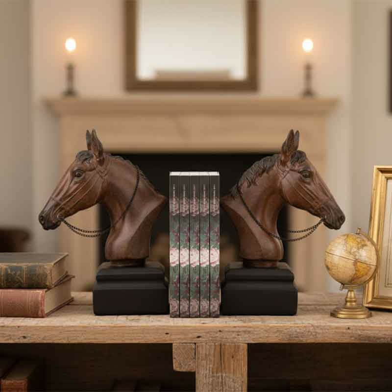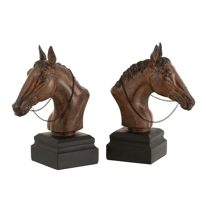 La paire de têtes de cheval évoque l'élégance des haras, la force et le charme des manoirs anglais. C'est un excellent cadeau pour un passionné de chevaux, un bibliophile ou quelqu'un qui cherche à enrichir sa décoration avec des pièces de caractère.