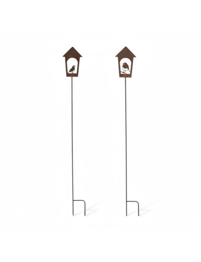 Ces tuteurs peuvent être utilisés ensemble pour décorer un parterre de fleurs ou une bordure d'allée. Ils ajoutent un élément décoratif discret qui crée une ambiance de tranquillité et de vie sauvage.