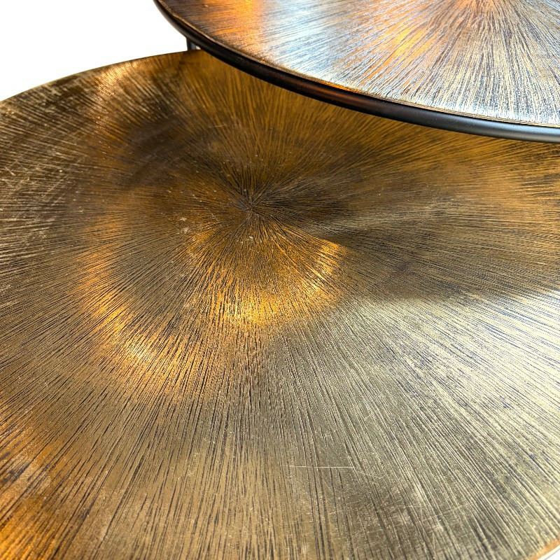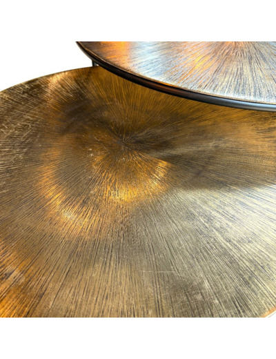 Matériaux : Plateaux en aluminium doré, structure en métal noir.