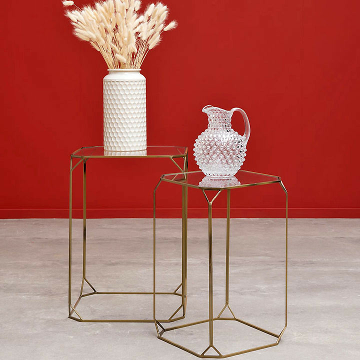Pensées pour s’adapter à vos envies, ces deux tables peuvent être utilisées ensemble pour composer un coin lounge élégant ou disposées séparément afin de structurer et sublimer différentes zones de votre pièce. Leur design géométrique et leur esprit moderne en font un choix idéal pour un salon, une chambre ou un bureau, qu’il soit contemporain ou inspiré de l’Art Déco.