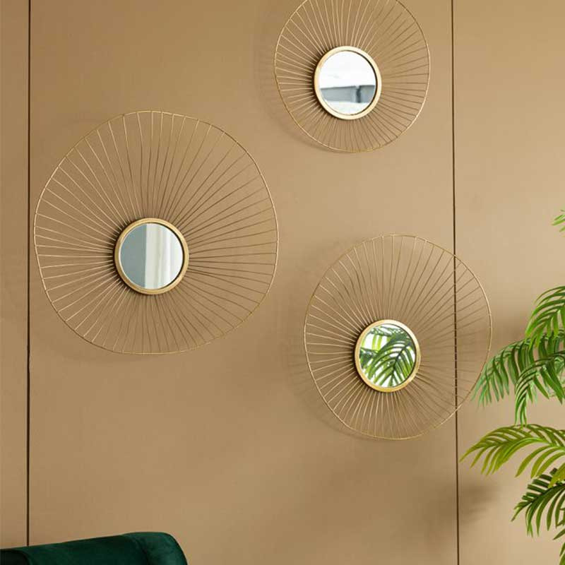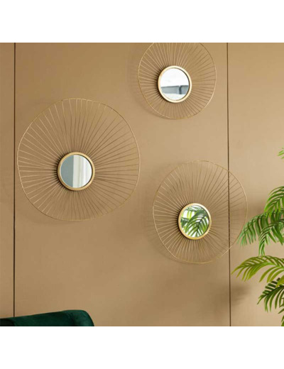 Cet ensemble de 3 Miroirs Soleil Dorés Ondulants est conçu pour apporter une élégance intemporelle à n'importe quelle pièce. Son design ondulant et sa finition dorée brillante ajoutent une touche de charme haut de gamme avec des matériaux de qualité supérieure.