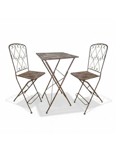 Robustesse et caractère : Conçu en fer de haute qualité, cet ensemble est aussi solide qu'esthétique, prêt à accueillir vos cafés matinaux ou vos apéritifs prolongés.