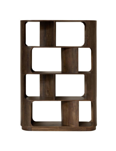 Fabriquée en manguier massif, cette étagère affiche un grain riche et une patine sombre qui souligne le caractère noble du bois. Chaque pièce possède des nuances uniques, garantissant un meuble de caractère qui traversera les années. Sa base pleine assure une stabilité parfaite, tout en respectant l'harmonie des courbes du sommet.