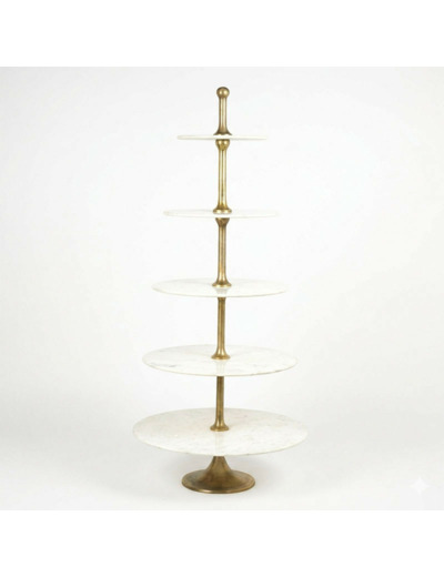 Cette étagère de grande envergure est idéal pour structurer le coin d'une pièce spacieuse ou pour servir de pièce maîtresse dans une entrée prestigieuse. Son mariage de marbre blanc et de métal doré s'intègre parfaitement dans une décoration de style Classique Chic, Haussmannien ou Art Déco.