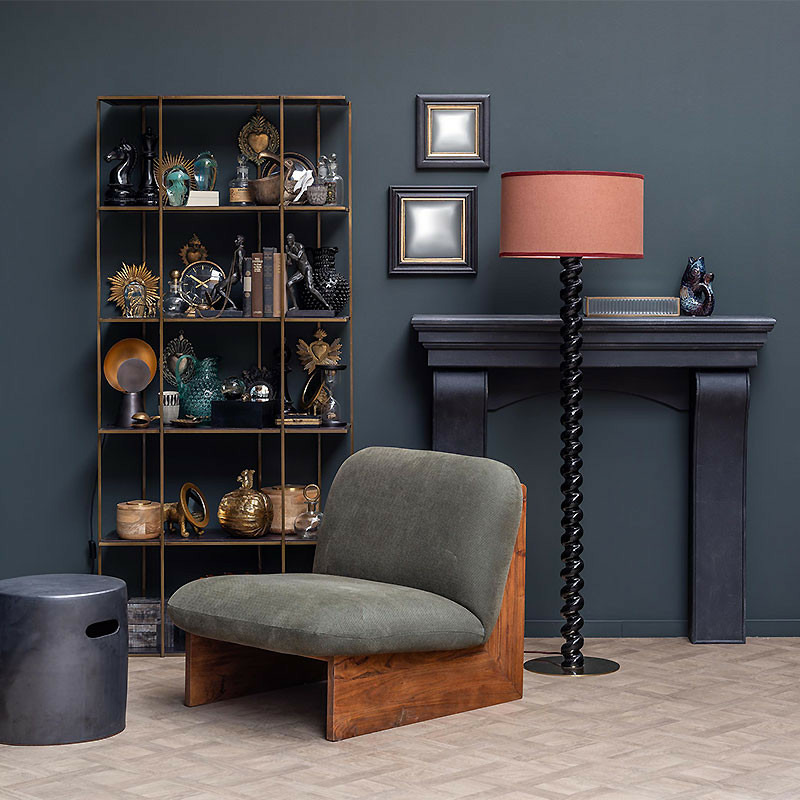 Créez un point focal en plaçant l'étagère Tina patine dorée dans votre salon vous pourriez y exposer vos plus beaux de objets décoratifs tel que des cadres photo, des plantes ou des livres.