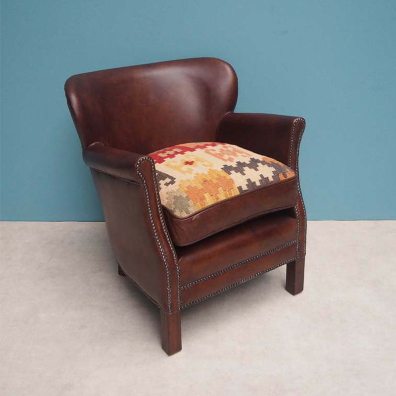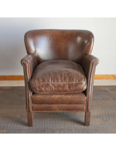 Sa forme enveloppante et son assise moelleuse invitent à la relaxation, tandis que son cuir vieilli apporte une touche de caractère à l’espace.
