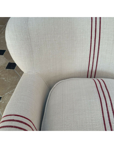 Chaque fauteuil étant issu de sacs originaux, de légères variations de rayures, de motifs ou de teintes peuvent exister, rendant votre acquisition absolument unique.