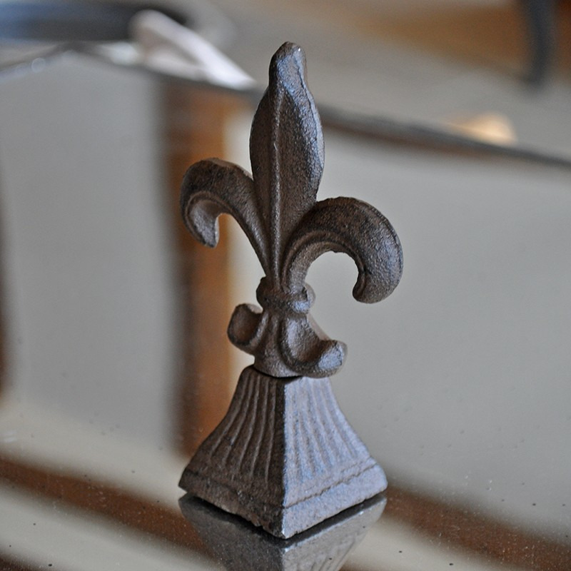 Magnifique fleur de lys en fonte à poser dans la maison ou le jardin. Stabilité assuré grâce à son pied qui met également en valeur ce sublime objet royal.
