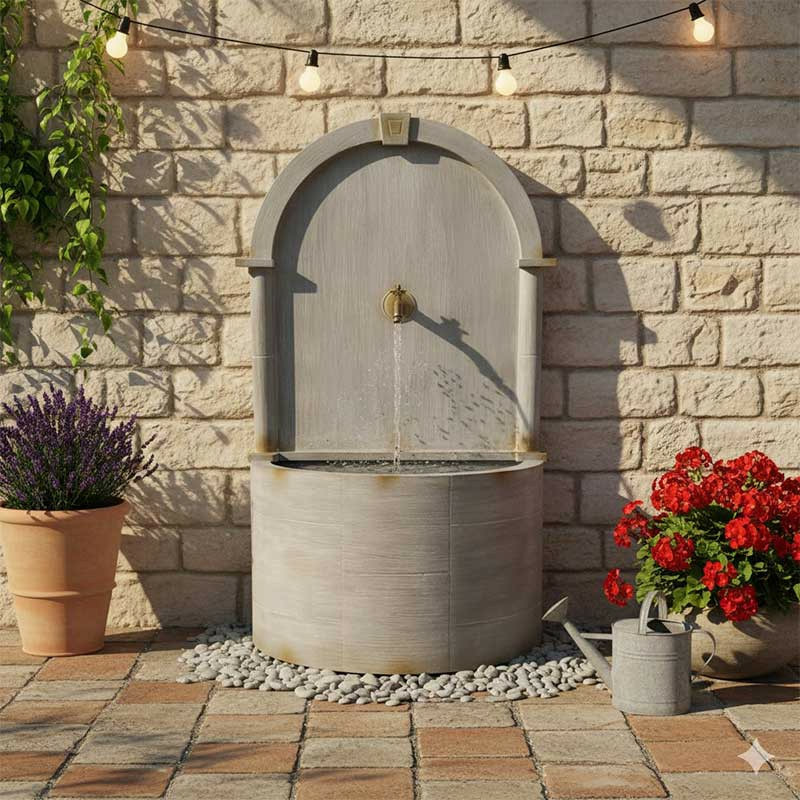 L'Ambiance Sonore et Visuelle Parfaite : Malgré sa stature, sa profondeur optimisée de 41 cm permet une installation murale sans encombre. Le robinet central antique déverse un filet d'eau dont le murmure puissant et relaxant transformera votre espace en un havre de paix digne des plus beaux jardins méditerranéens.