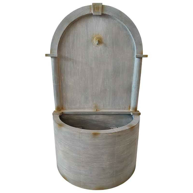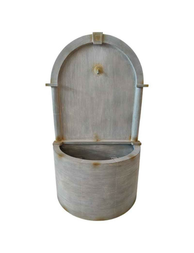 Finition Prestige : Fer Patiné Gris Antique Fabriquée en fer robuste, la fontaine arbore une somptueuse patine gris-blanc nuancé, rehaussée de légères marques d'usure. Cette finition donne l'illusion d'une ancienne pierre calcaire ou d'un zinc vieilli par les siècles, assurant un contraste saisissant avec la verdure environnante.