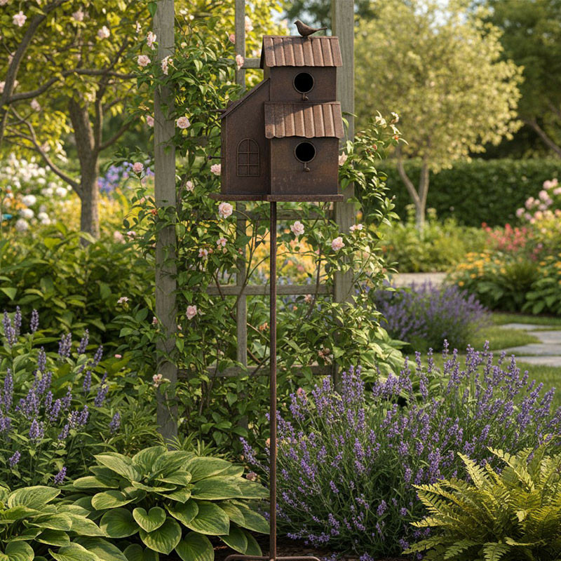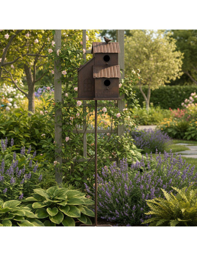 Ce grand nichoir à oiseaux en forme de maison en fer est un ajout décoratif et fonctionnel à votre jardin. Il offre un refuge chaleureux pour les oiseaux, encourageant leur présence dans votre espace extérieur tout en ajoutant une touche esthétique unique.