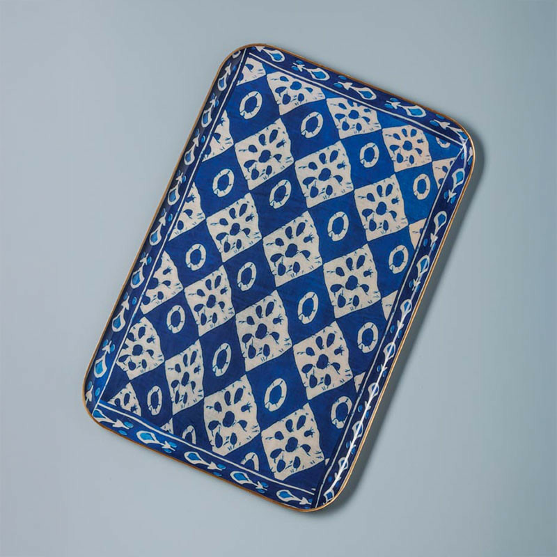 Les points forts de ce superbe plateau bleu Bangalore en fer :