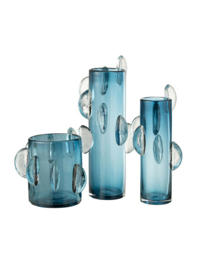 Pour accentuer son côté design, placez-le sur des meubles aux lignes claires ou sur un socle en bois clair ou blanc pour faire ressortir sa couleur bleue.