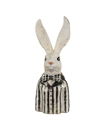 Dans un salon au style vintage ou baroque, la grande décoration lapin noir blanc polyrésine 16x14x42cm sublime une cheminée, une bibliothèque ou une étagère décorative.