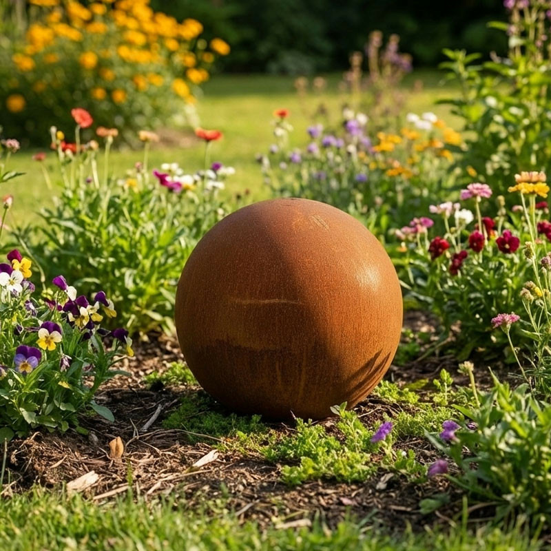 Point Focal Impactant : Sa forme parfaitement ronde et sa couleur terreuse créent un contraste saisissant avec le vert de la pelouse, les textures minérales ou les couleurs vives des fleurs.