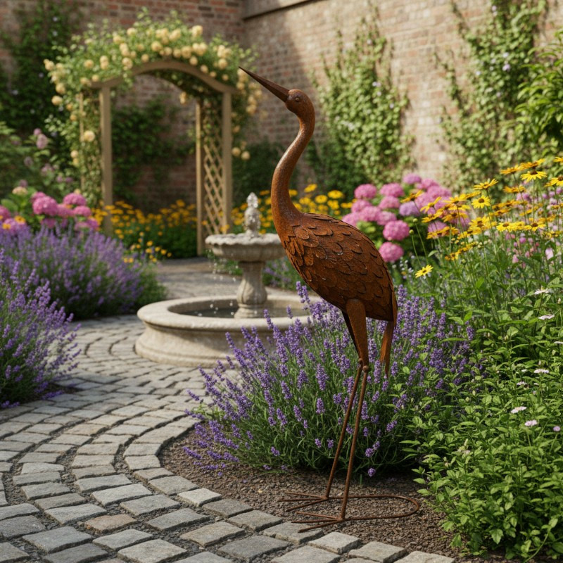 Plus qu'un simple ornement, ce héron en fer est un symbole de sérénité, parfait pour créer une atmosphère zen, rustique ou bohème. Un choix raffiné pour les passionnés de décoration extérieure et les amoureux de la nature, cherchant une pièce unique et pleine de charme.
