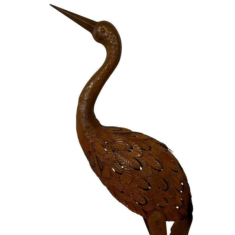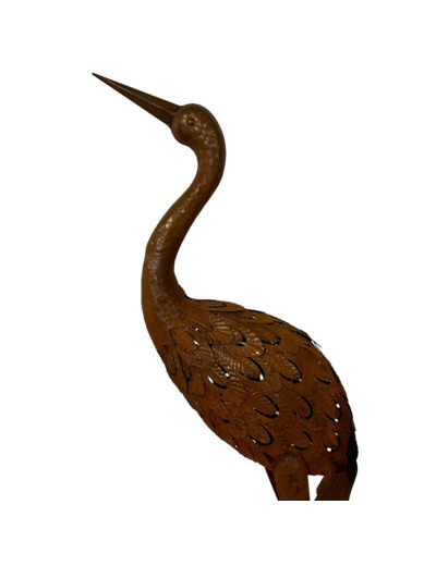 Ce héron décoratif en fer de 100 cm est une véritable invitation à la contemplation et à l'harmonie avec la nature. Inspirée par la silhouette majestueuse des grands échassiers, sa sculpture met en valeur des détails délicatement travaillés : un long bec fin, un cou gracieux et des plumes superposées qui lui confèrent un réalisme poétique.