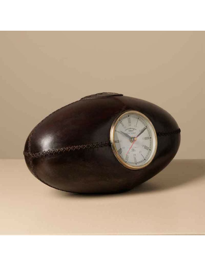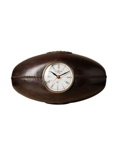 Cette horloge en forme de ballon de rugby trouve facilement sa place dans différents univers décoratifs.