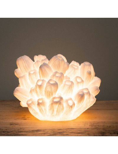 Jeu de Lumière : Une fois éclairée, la lampe diffuse une lueur douce qui souligne chaque détail de sa structure, créant une atmosphère apaisante et chaleureuse.
