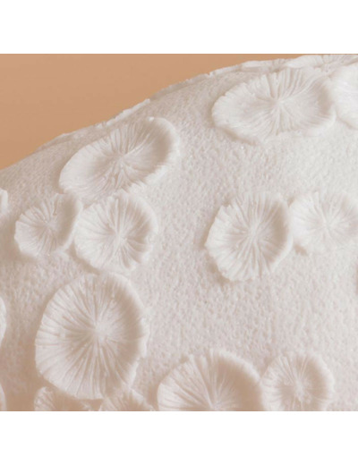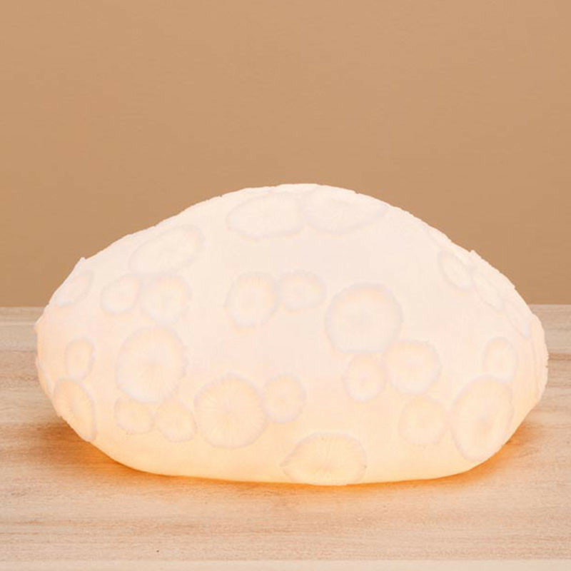Une fois allumée, la magie opère : la matière devient translucide par endroits, créant un jeu d'ombres et de lumières apaisant. Posée sur une console en métal noir pour un contraste moderne, ou sur un meuble en bois pour un look plus naturel, elle devient instantanément le point focal de votre pièce.