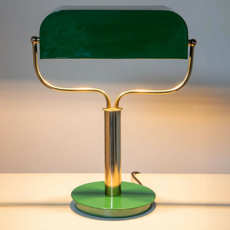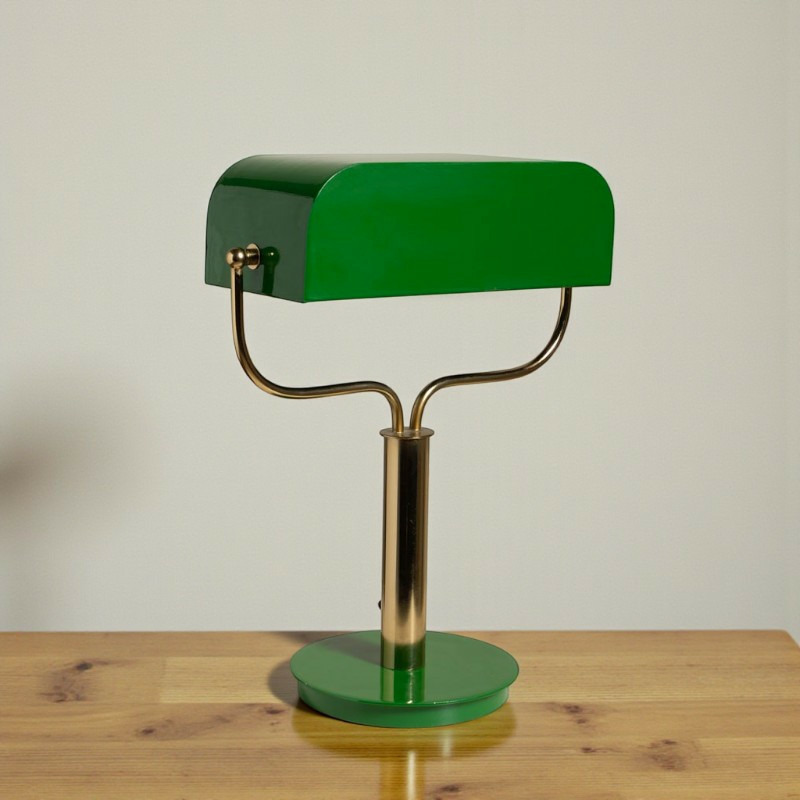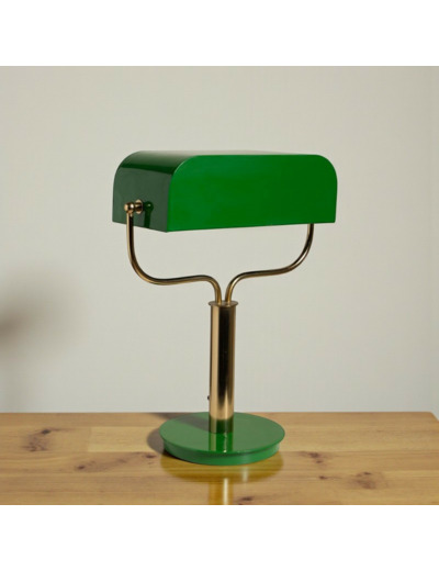 L’Abat-jour Orientable : Conçu en fer laqué d'un vert profond et brillant, il pivote pour diriger le flux lumineux avec précision sur vos lectures ou vos dossiers.
